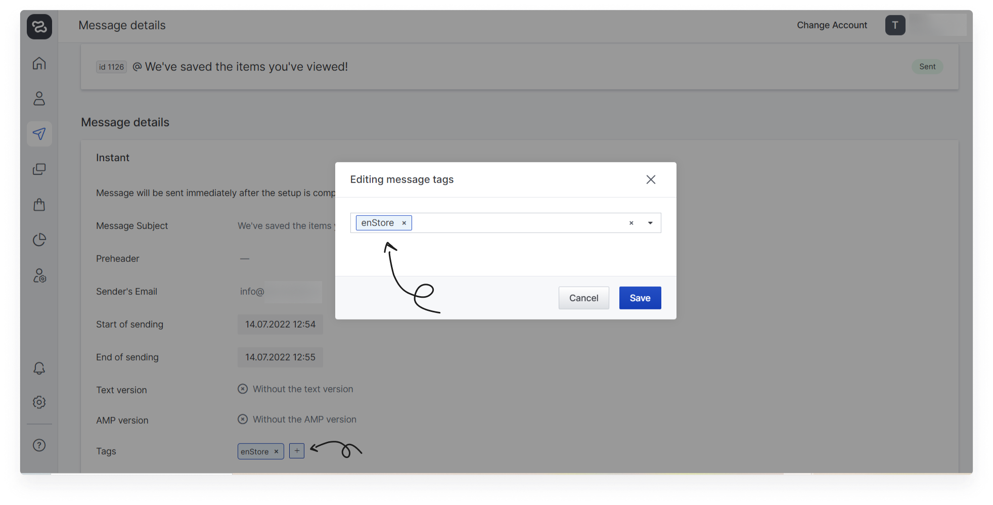 When working with messages, you can use tags. They help to visually distinguish messages in the list and logically unite them. You can assign several tags to a message at once. Tags can be added at the stage of message content customisation. After you have written the name of the tag, press Enter and it will be added.