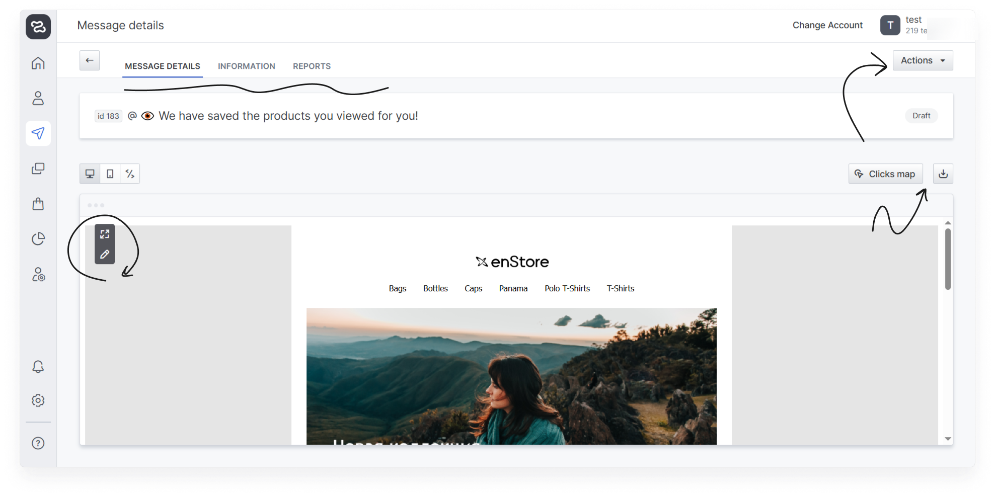 In the “Message details” section you can view clicks map, download the message as an image or HTML file.
