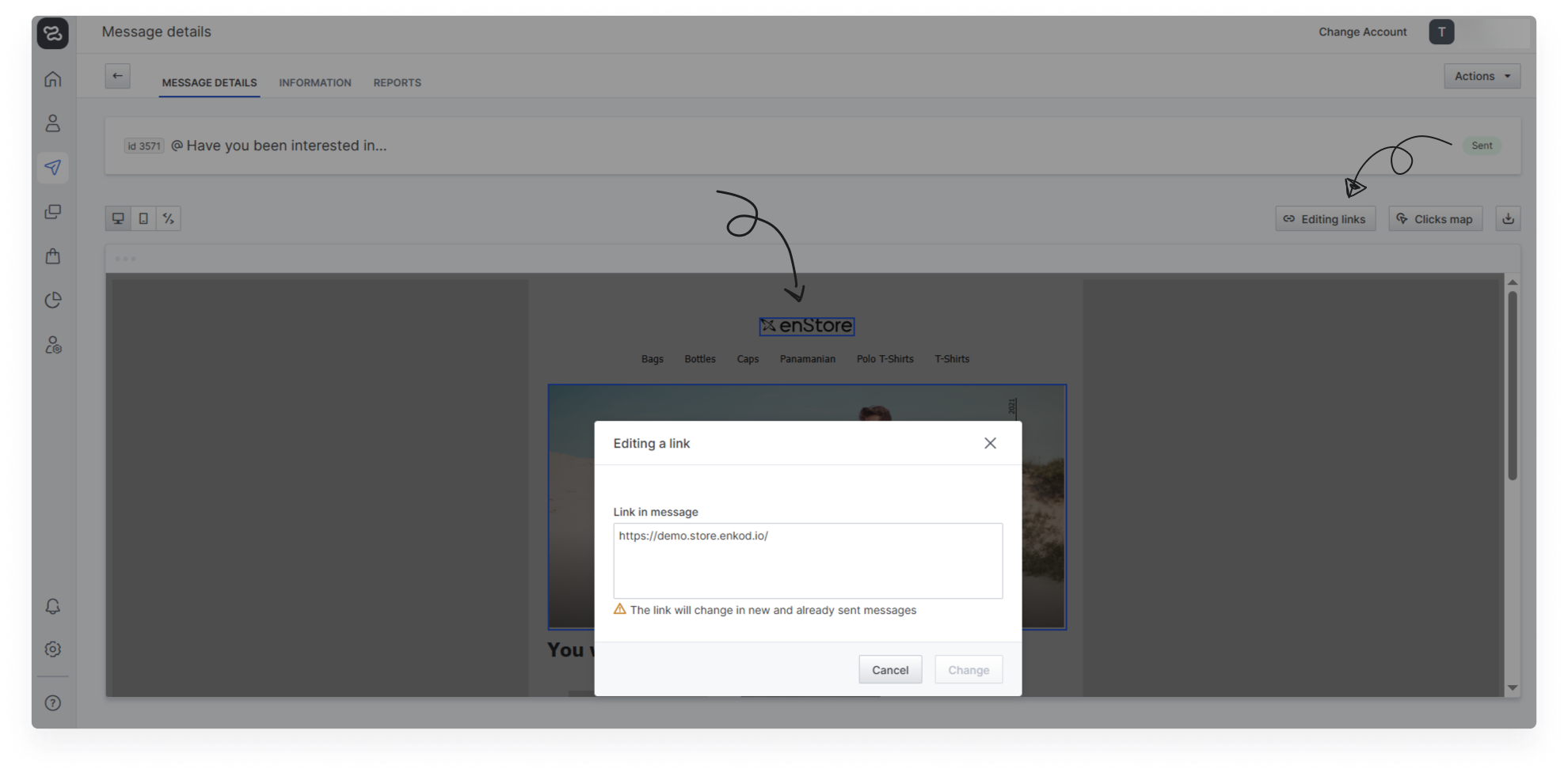 Changing links in sent messages