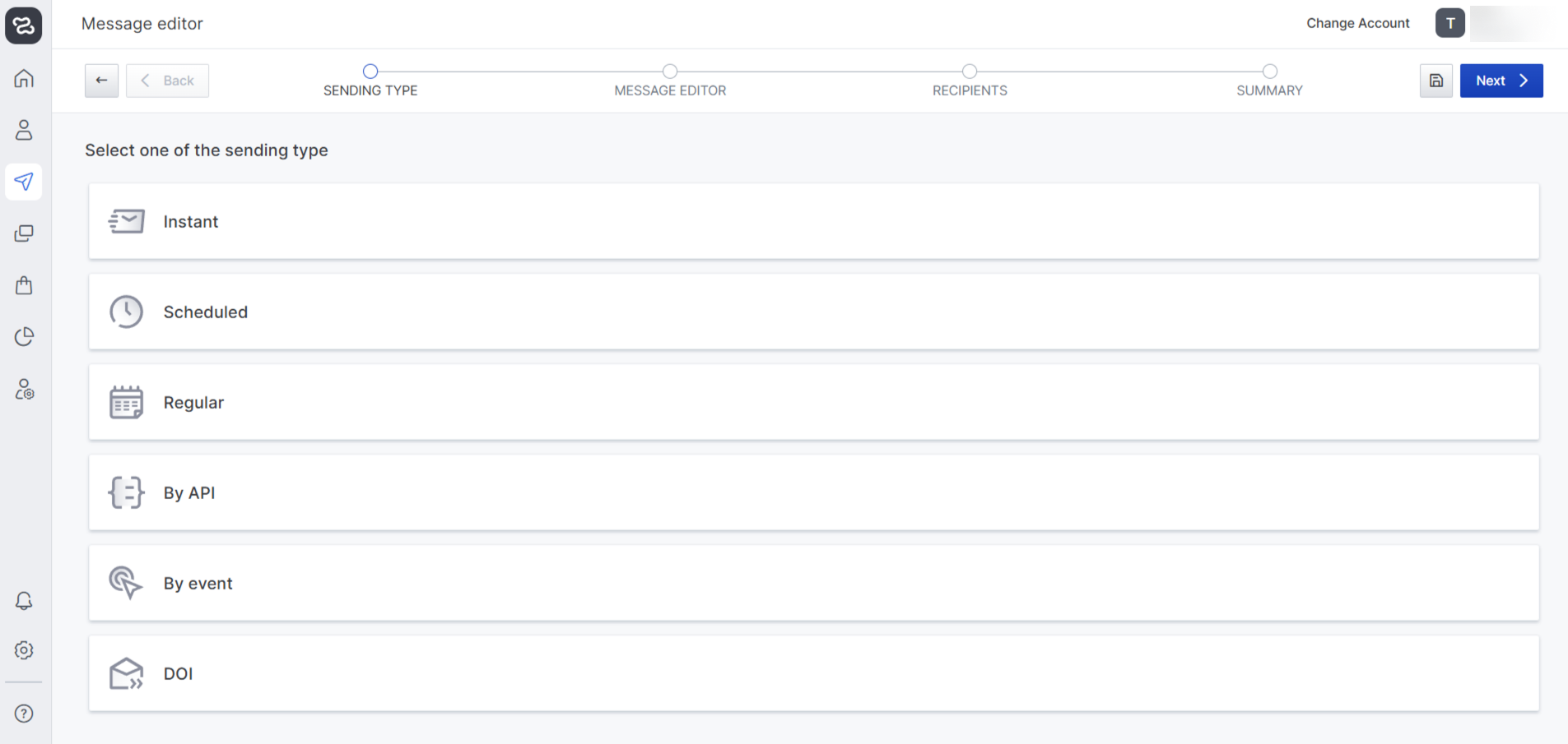 Next, customise the content of the message. There are 3 options available: