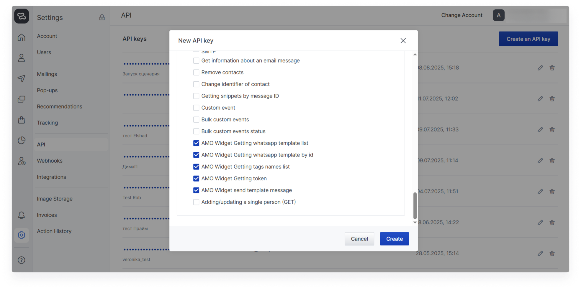 Create in enKod API key with permissions: