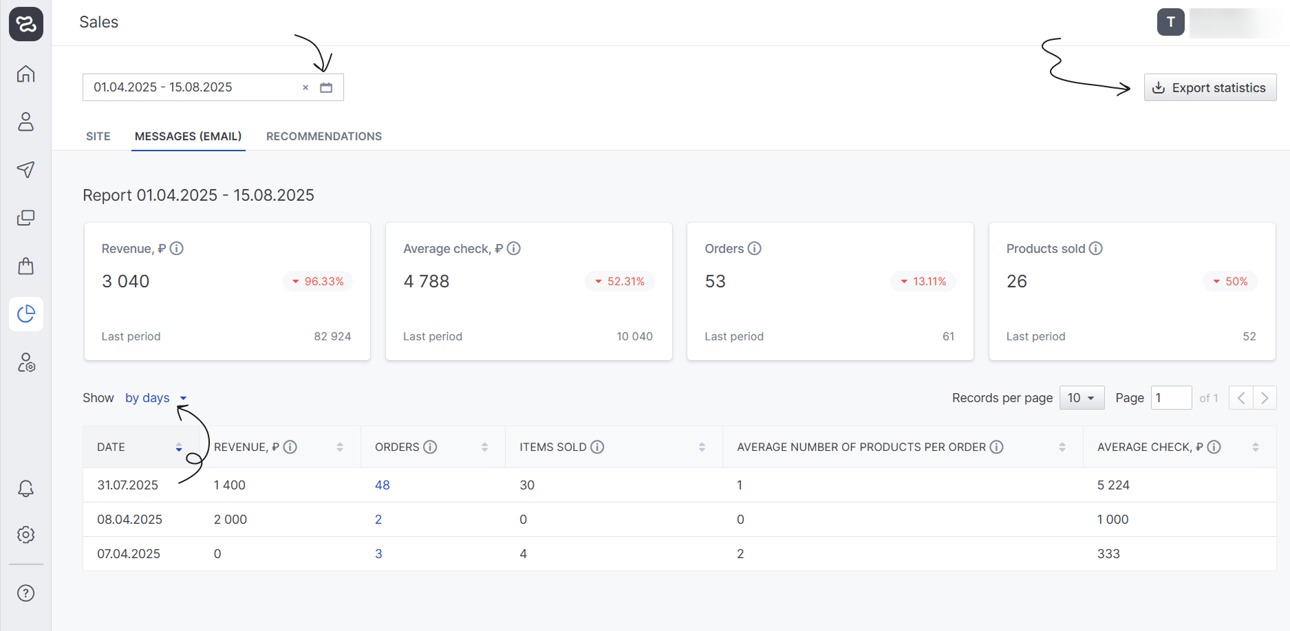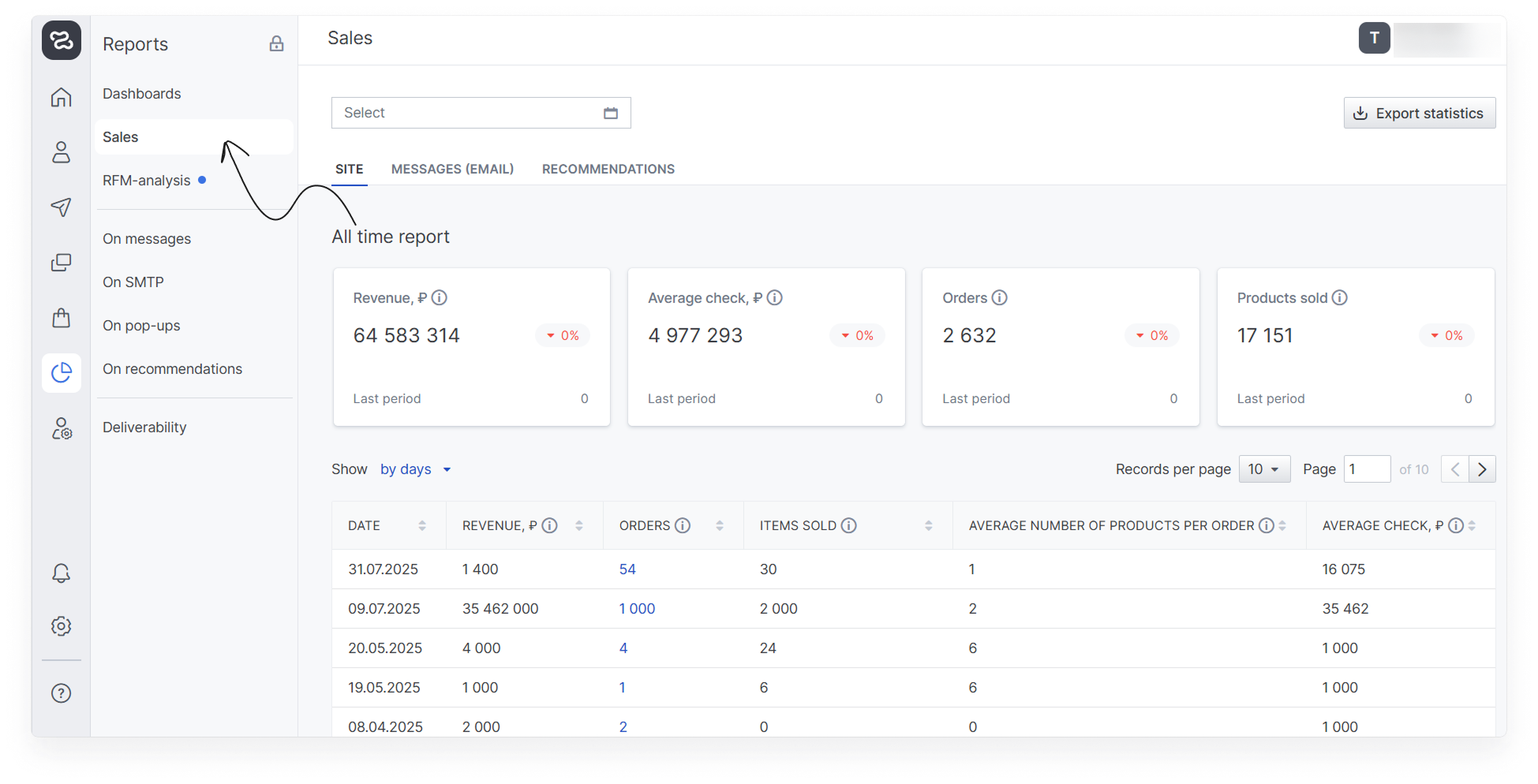 Sales statistics are available only if you connect tracking (activity tracking) on the website